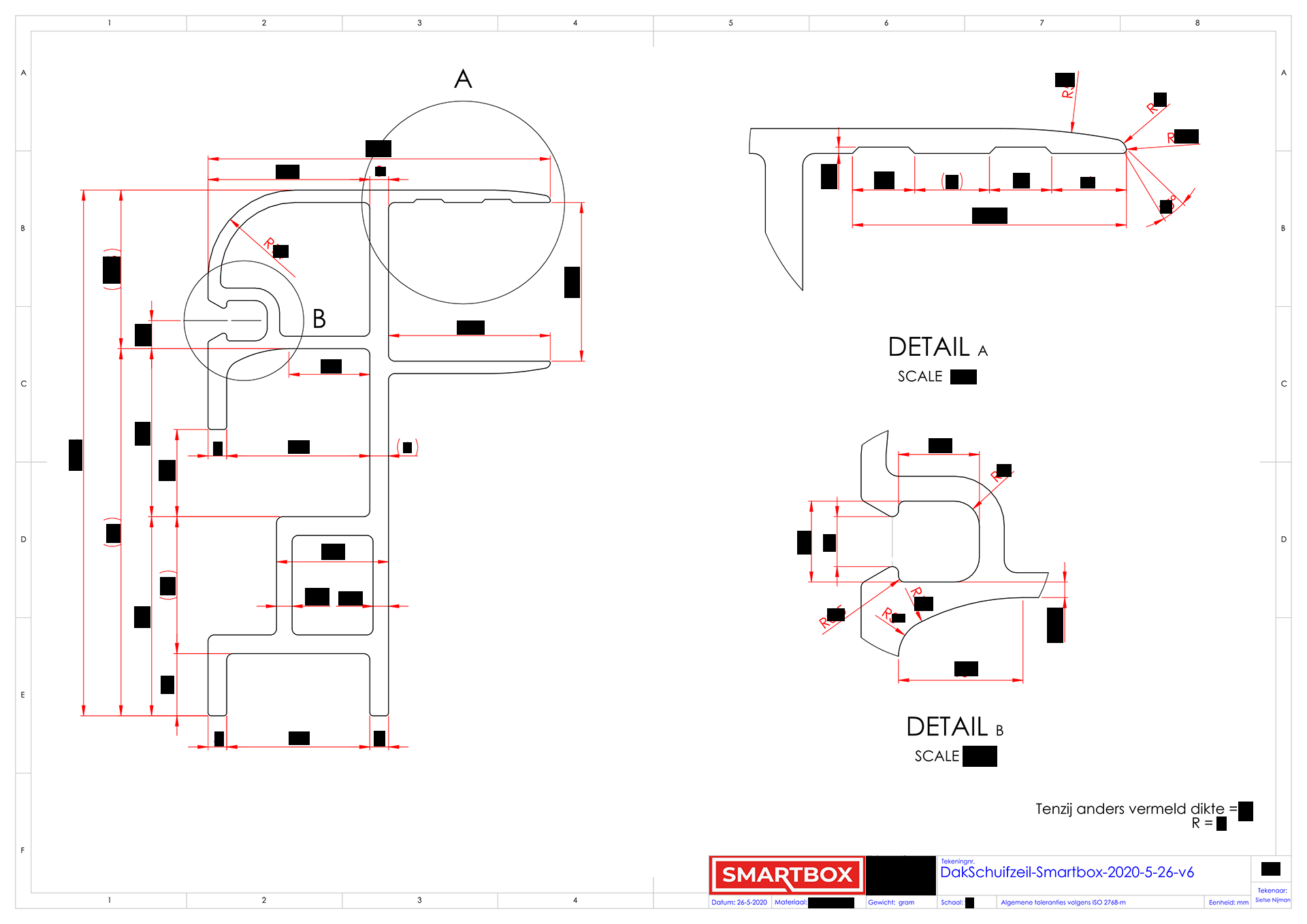 For the curtain slider I designed two profiles that can fit the rollers Smartbox already used. To reduce in costs the profile for the bottom of the Smartbox can also fit hinges so the profile can be used for open loading boxes. The profiles on the sides are the standard Smartbox profiles that now have a standard aluminium profile fit in between. On these standard profiles a folded aluminium plate can be attached so the handles of the curtain sliders can be attached to them and the curtain slider can close. The handles and the rollers of the curtain sliders are the same as the ones Smartbox previously used.