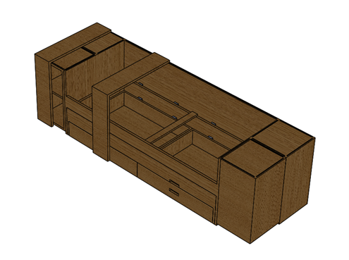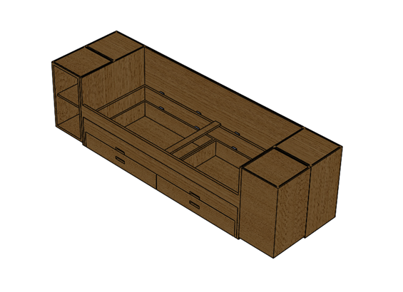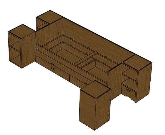 My project started with exploring the website from Leen Bakker. To see what brands they have and what they design themselves. Here I also found the mission, vision and the history of Leen Bakker. The next step was to describe the customers Leen Bakker likes to focus on and a SWOT analysis. With the SWOT I analysed some Trends that I found interesting. I divided these trends in Mega Trends and Living Trends. With potential customers I checked which furniture they would like and combined the top 3 in multiple concepts. When I was almost finished my lecturer reminded me that I wanted to make furniture that was as durable as possible. This was the reason I had almost everything made out of wood. My lecturer challenged me to replace the metal parts like the bolts and the metal corner profiles made to hold up the slatted base of the bed with wooden pins. I calculated that I would need 150 wooden pins of 8mm thick to hold up a slatted base of a one person bed.