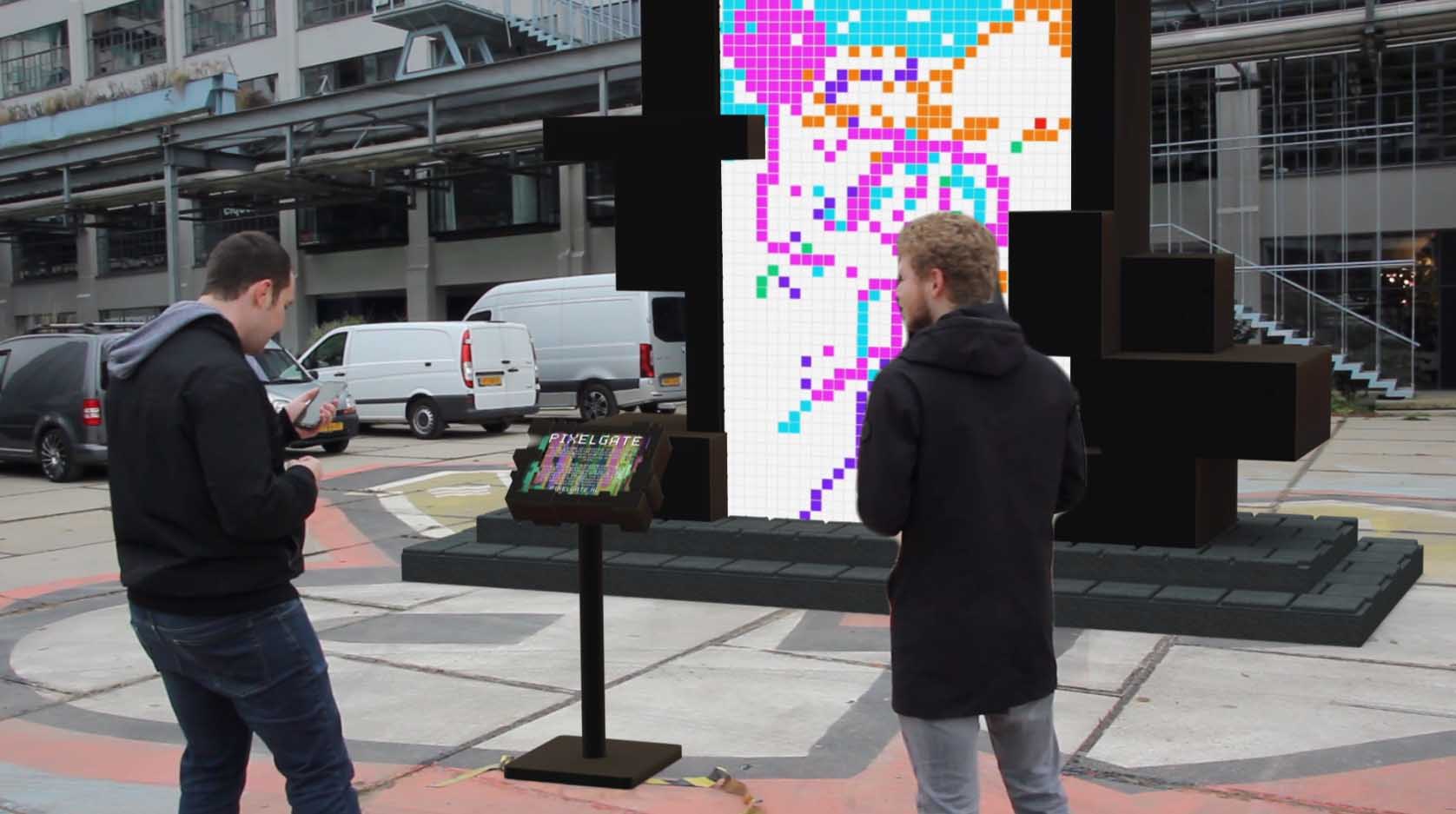 During the Corona pandemic it became increasingly more difficult to play games together. That is why we tried to create a game that could be played both located and dislocated and requires social interaction to get anything done. Inspired by the reddit experiment /r/place from 2017. The PixelGate is an object located in Strijp-S Eindhoven. There are multiple device you can use to draw on the pixel canvas that are in a safe distance from each other but you can also play using the web application from where ever you want. With teamwork and powerups but you can complete several prompts showns on the screen.