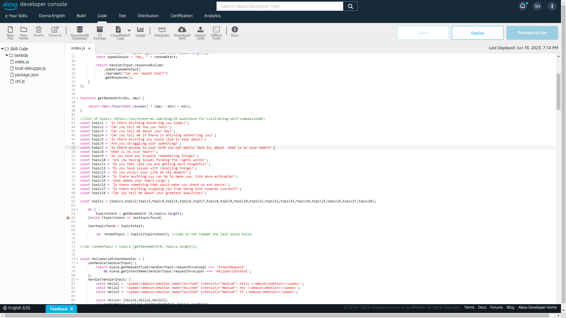Later on, I moved away from Boost.AI and went with Amazon Developer mode, for which I needed to operate the platform and some basic JavaScript. The conversations work with Alexa as can be seen on this video. The code can be found on GitHub. Then the more physical aspect did not go as planned. I bought felt and needle but didn't manage to get a realistic or good-looking shape, which is important for people with dementia. For this reason, I decided to outsource the materials and bought a plush instead to put the Alexa inside.