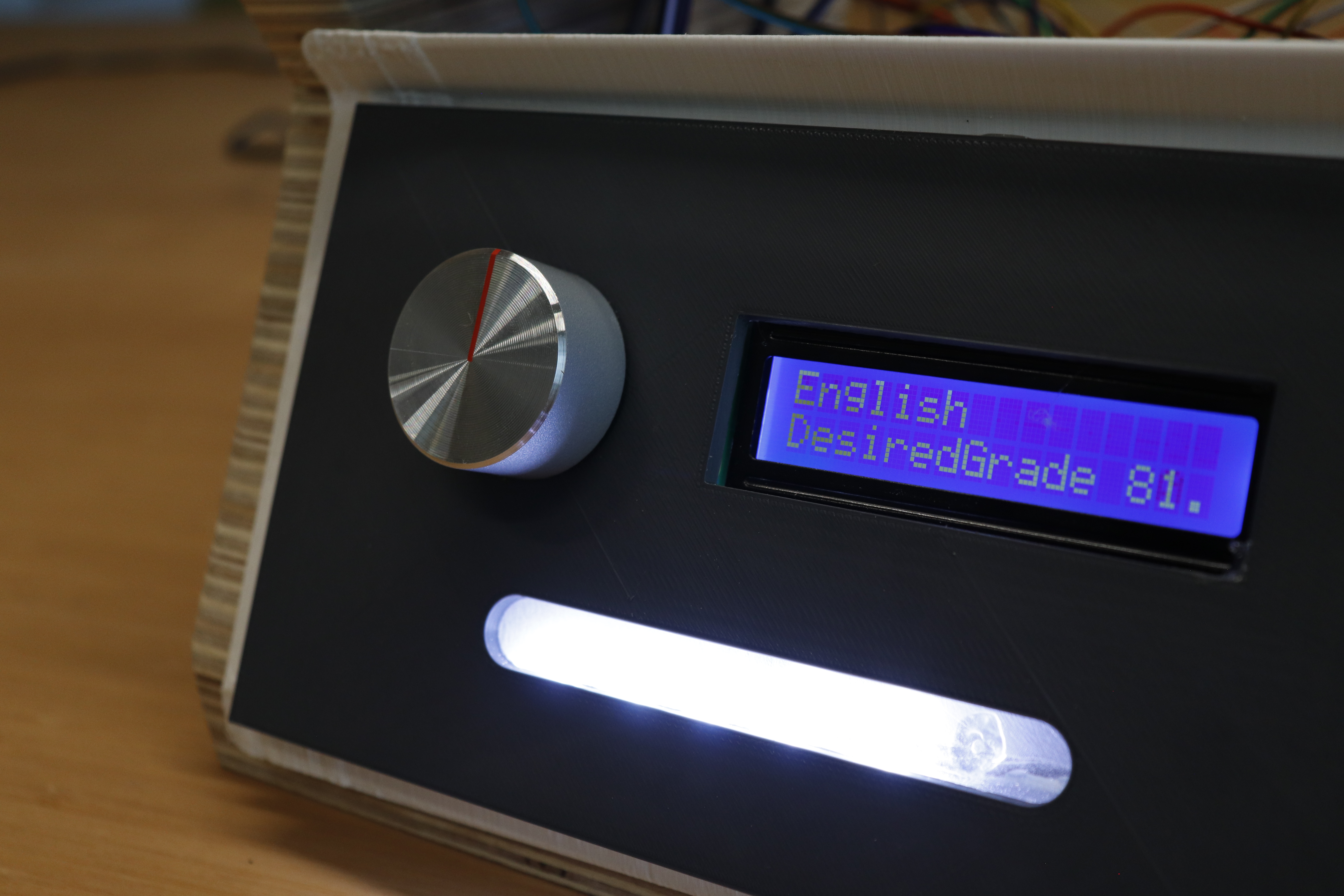 It is sometimes difficult for students to estimate how much time they should set aside for a high school subject to achieve the desired grade. To help them, this project focuses on designing a tool that gives students insight into how much they need to learn. It was a requirement to make use of machine learning, and it had to be applied in a way that only this type of technology could be used as a solution. The final design is a prototype with two parts, a software system that calculates how long you should study, and a physical part that facilitates communication between user and system. This resulted in a working prototype grounded on fabricated data that is ready to be tested with participants (high school students). The ML is a support vector regression model, which can predict the study time based on the predicted data. The SVR and two other models were tested repeatedly to see which one had the best result based on the R2 score. Using XAI, students can read the accuracy of the predicted study time, and this might help them with their planning.