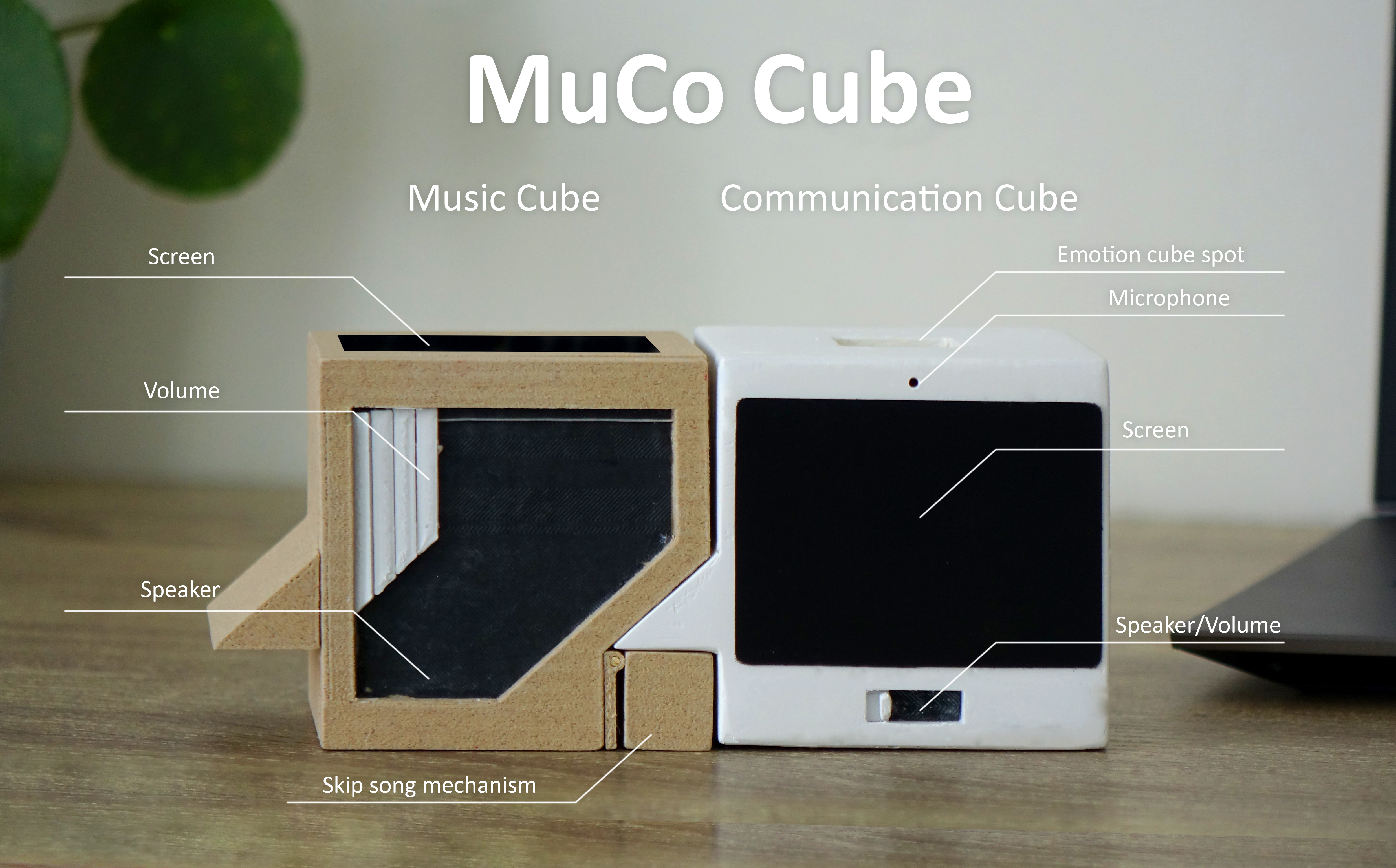 During the pandemic it became more difficult to stay in touch with friend. MuCo is a solution for this problem. This growing system can help you interact and connect with friends by sharing songs, chatting and seeing each others emotions. The interaction with MuCo is designed to be seemless. This means that you know how to use it without reading a manual. The connection of cubes is an example of this. Making them shaped like a puzzle you know they fit together.
