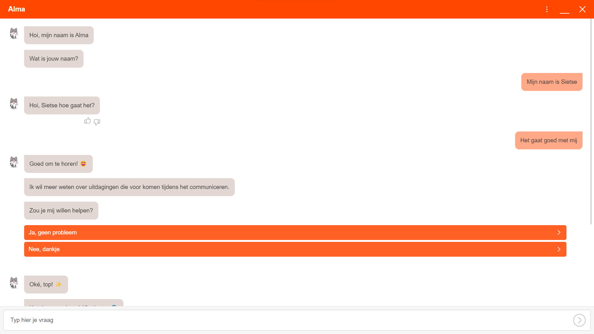 Before the master, I already valued user-centred design. However, during the course of my master's program, my interest grew. I have always found interest in societal issues and politics, and this is something I wanted to apply in my master's studies. In the first semester of the master, my peers and I developed a debating tool called "Debatably" aimed at facilitating conversations among individuals with different perspectives. Afterwards, I went to work on a motivation chatbot, doing research in the field of sociology to get a better understanding of human behaviour. Taking a step further, I challenged myself with a project focusing on people with dementia. Through a field study in elderly homes, I tested a chatbot designed specifically for engaging in conversations with individuals with dementia, so they could talk about their symptoms. This experience not only allowed me to work closely with this target group but also required me to cultivate patience and empathy to comprehend their perspectives and challenges.